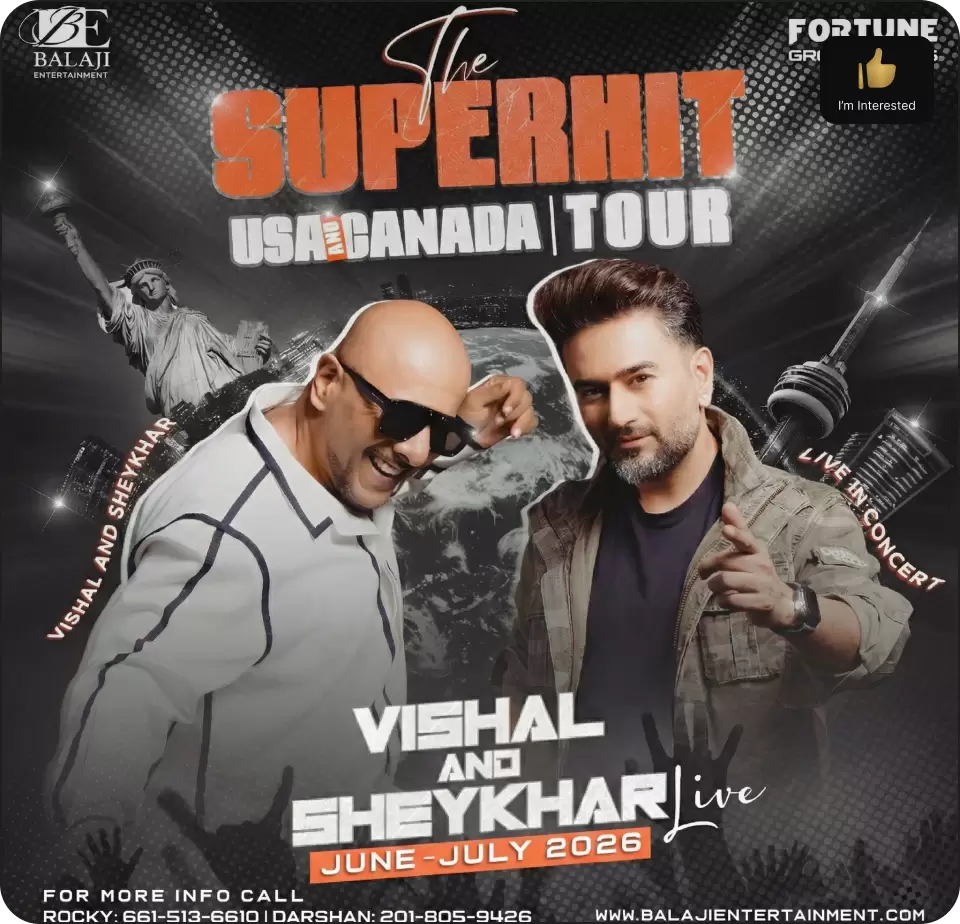 Shri Balaji Entertainment, the name behind some of North America’s most spectacular Bollywood concerts, proudly presents “Vishal & Sheykhar Live” – a power-packed musical experience as part of our grand USA-CANADA Tour 2026.