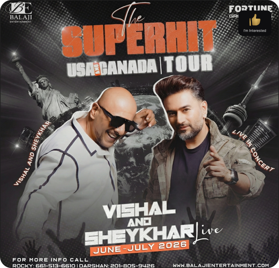 Shri Balaji Entertainment, the name behind some of North America’s most spectacular Bollywood concerts, proudly presents “Vishal & Sheykhar Live” – a power-packed musical experience as part of our grand USA-CANADA Tour 2026.